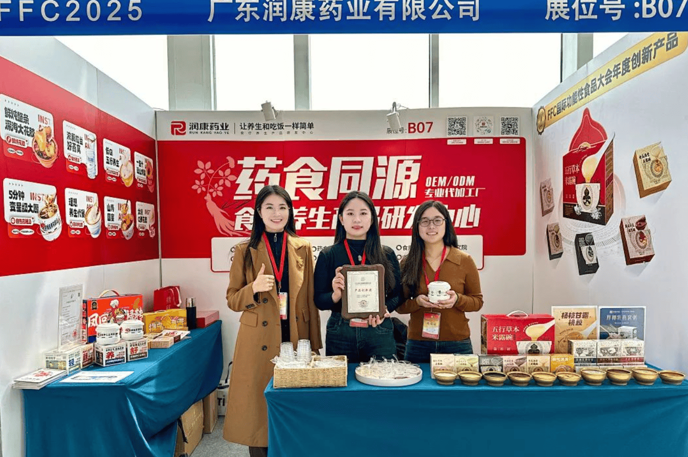 FFC 2025功能性食物大会正在山东青岛昌大启幕。润康做为药食同源立异代表企业,本届大会晤向全国搜集功能性食物新、新产物、新手艺和新工艺的优良案例。让科学食养更简单。